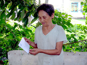 Bà Lang nhận tiền từ thiện do nhà hảo tâm gởi tặng. |