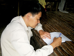 Anh Chiến ký nhận tiền bạn đọc giúp đỡ.
