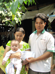 Gia đình cháu Nguyễn Hoàng Phúc nhận tiền của bạn đọc gửi tặng. |