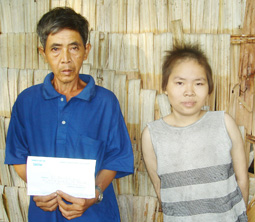 Gia đình Bùi Thị Bích Tuyền nhận tiền từ thiện của bạn đọc.