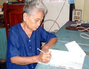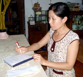Bà Ngọc ký nhận tiền bạn đọc gởi tặng. |
