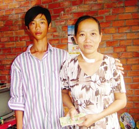 Mẹ con bà Nguyễn Ngọc Rỡ vui mừng nhận tiền của bạn đọc Báo Cần Thơ gởi tặng.