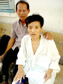 Anh Nguyễn Văn Tưởng và anh trai nhận tiền bạn đọc Báo Cần Thơ trao tặng. Ảnh: THÙY TRANG |