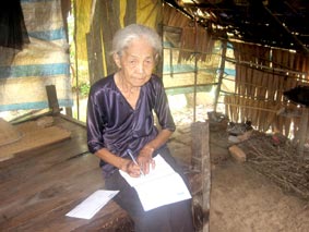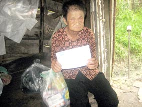 Bà Nguyễn Thị A ký tên nhận tiền bạn đọc gửi tặng.