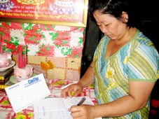 Bà Chi ký tên, nhận tiền của nhà hảo tâm do Báo Cần Thơ chuyển giao. Ảnh: M.Nguyệt
