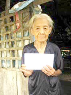 Bà Nguyễn Thị A xúc động nhận tiền bạn đọc gởi tặng. Ảnh: T.Hằng