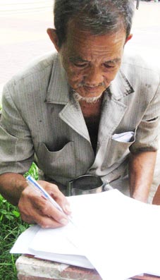 Ông Nguyễn Văn Khỏe ký nhận tiền bạn đọc gởi tặng.