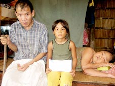 Gia đình bà Nô với số tiền bạn đọc gởi tặng. Ảnh: T.Hằng