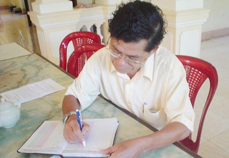 Bác sĩ Phan Ngọc Sơn, Phó Giám đốc Nhà nuôi dưỡng, đang ký nhận tiền của bạn đọc Báo Cần Thơ gởi tặng. Ảnh: KC