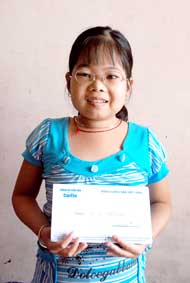 Cháu Hứa Thị Diễm Trang, ở phường Hưng Phú, quận Cái Răng vui mừng khi nhận được tiền của bạn đọc Báo Cần Thơ gởi tặng. Ảnh: XUÂN ĐÀO