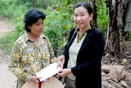 Đại diện Hội Chữ thập đỏ phường Lê Bình, quận Cái Răng trao tiền của bạn đọc Báo Cần Thơ cho chị Nguyễn Thị Thanh Nguyên (con gái nuôi của ông Nguyễn Tứ Hải). Ảnh: X. ĐÀO