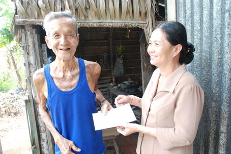 (CT)- Đại diện Báo Cần Thơ kết hợp với đại diện Hội Chữ thập đỏ quận Cái Răng và phường Lê Bình vừa đến trao số tiền 200.000 đồng của bạn đọc Minh Anh và Phúc Thịnh ở đường Mậu Thân, quận Ninh Kiều, gởi giúp đỡ hai hoàn cảnh thương tâm là: Ông Nguyễn Văn Quặng và ông Nguyễn Tứ Hải cùng ngụ khu vực Yên Trung, phường Lê Bình, quận Cái Răng, mỗi người 100.000 đồng, (xem bài “Hãy giúp đỡ hai cụ già neo đơn, bệnh tật” trên Báo Cần Thơ điện tử ngày 12-8-2009). Hoàn cảnh của hai ông cụ rất đáng thương, bản thân bệnh tật sống một mình không vợ con nuôi dưỡng trong căn nhà nhỏ. Hàng ngày sống nhờ vào khoản tiền bảo trợ xã hội của Nhà nước (120.000 đồng/tháng). Điều đáng buồn là hôm chúng tôi đến trao tiền, ông Nguyễn Tứ Hải vừa qua đời một ngày trước đó.