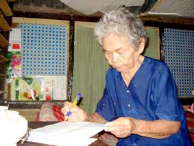 Bà Ngọc xúc động nhận tiền bạn đọc gởi tặng.
