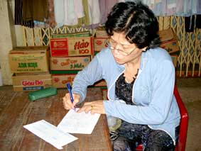Đại diện gia đình chị Thủy ký nhận tiền bạn đọc gởi tặng.