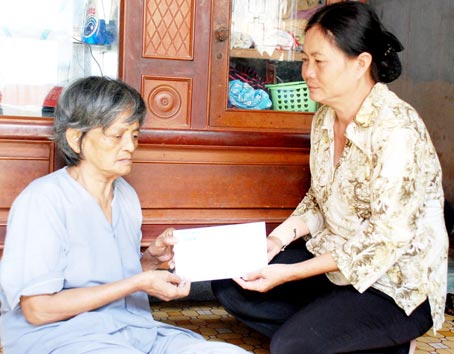 (CT)- Ngày 4-9-2009, đại diện Báo Cần Thơ cùng cán bộ Hội Chữ thập đỏ (CTĐ) quận Cái Răng đã đến trao 400.000 đồng cho 2 hoàn cảnh thương tâm là: ông Nguyễn Văn Quặng (200.000 đồng- ảnh 1) và ông Nguyễn Tứ Hải (200.000 đồng) cùng ngụ khu vực Yên Trung, phường Lê Bình, quận Cái Răng (xem bài “Hãy giúp đỡ hai cụ già neo đơn, bệnh tật” trên Báo Cần Thơ điện tử ngày 12-8-2009). Do ông Hải qua đời nên đại diện Báo Cần Thơ trao cho con gái nuôi của ông là Nguyễn Thị Thanh Nguyên (ảnh 2). Số tiền trên do tập thể cán bộ- công nhân viên Ngân hàng HD Bank gởi giúp. Trao 200.000 đồng của ông Huỳnh Ngọc Ẩn, ngụ phường Cái Khế, quận Ninh Kiều, gởi giúp cháu Bùi Thị Thắm, ở khu vực Thạnh Mỹ, phường Thường Thạnh, quận Cái Răng (ảnh 3 - xem bài “Xin giúp bé Thắm vượt qua căn bệnh hiểm nghèo!” trên Báo Cần Thơ điện tử ngày 9-1-2008).