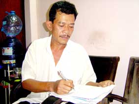 Anh Mai Hồng, cha của bé Mai Phương Thảo đang ký nhận tiền của bạn đọc Báo Cần Thơ gởi tặng. Ảnh: K.C