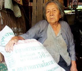 Bà Đào nhận gạo do bạn đọc gởi tặng.
