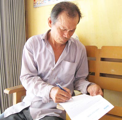 Ông Trương Văn An đang ký nhận số tiền của bạn đọc Báo Cần Thơ gởi tặng. Ảnh: K.C