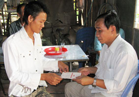 Ông Huỳnh Ngọc Ẩn (ở quận Ninh Kiều) đại diện cho bà Khưu Thị Nga, Khưu Thị Mỹ Hằng và các bạn ở Úc, vừa đến thăm và gởi 500.000 đồng, giúp bà Phan Thị Trong trong bài “Những mảnh đời bất hạnh” trên Báo Cần Thơ số ra ngày 22-10-2009 (ảnh 1). Bà Trong ở khu vực Thới Lợi, phường Phước Thới, quận Ô Môn, TP Cần Thơ, hoàn cảnh rất đáng thương. Hàng ngày bà đi bán cá nuôi dưỡng mẹ già bị lẫn, cháu nội mồ côi sống đời thực vật.