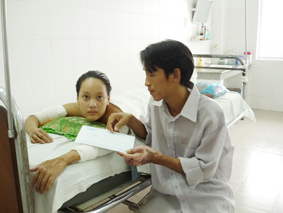 Gia đình anh Triệu Ngân Giang cám ơn những nhà hảo tâm đã giúp đỡ anh trong thời gian qua. Ảnh K.C. |