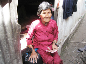 Bà Nguyễn Thị Xem nhận tiền và gạo của bạn đọc Báo Cần Thơ gởi tặng. Ảnh: K.C. |