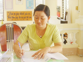 Đại diện Nhà nuôi dưỡng ký nhận tiền của bạn đọc Báo Cần Thơ gởi tặng. Ảnh: K.C. |