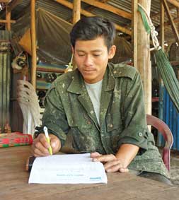 Anh Nguyễn Văn Trung, chồng của chị Triệu Thị Mỹ Dung, ký nhận tiền của bạn đọc hỗ trợ chị Mỹ Dung đi chạy thận nhân tạo ở Bệnh viện Đa khoa TP Cần Thơ.