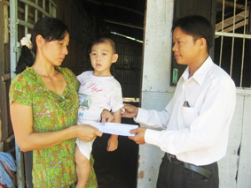 (CT)- Ngày 7-5-2010, đại diện Báo Cần Thơ kết hợp với Cán bộ khu vực Thới Ngươn A, phường Phước Thới, quận Ô Môn, trao số tiền 500.000 đồng cho gia đình anh Nguyễn Huê Long Hồ (xem bài: “Mong có tiền chữa bệnh cho con” trên Báo Cần Thơ điện tử ngày 9-11-2009). Số tiền trên của bạn đọc Trần Văn Phước, Công ty Liên doanh thuốc lá Vinasa (quận Cái Răng) gởi tặng.