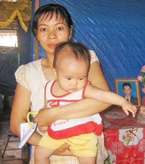 Do bà Nguyễn Thị Đính và ông Lê Nhật Thường đã mất nên bà Nguyễn Thị Khế (con dâu bà Đính) và chị Trần Thị Huyền (con dâu ông Thường), thay mặt gia đình, nhận số tiền do bạn đọc gởi giúp đỡ.