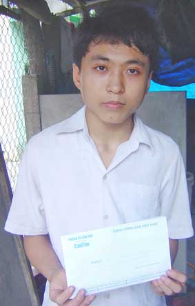 Em Trương Quang Trung gởi lời cảm ơn đến những nhà hảo tâm đã giúp đỡ gia đình em trong thời gian qua. Ảnh: KC. |
