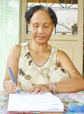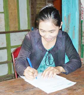Bà Nguyễn Thị Khế (con dâu bà Nguyễn Thị Đính) ký nhận số tiền bạn đọc gởi giúp đỡ. |