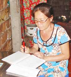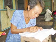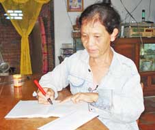 Bà Lý Thị Viễn ký nhận tiền bạn đọc gởi tặng. |