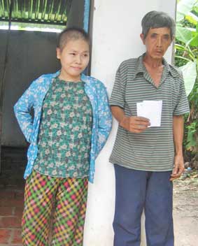 Gia đình cô Bùi Thị Bích Tuyền nhận tiền từ thiện do bạn đọc gởi tặng. Ảnh: T.H.