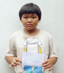 Em Ngô Thị Hồng Thủy nhận tiền bạn đọc gởi tặng. Ảnh: Ngọc Dung