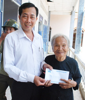 Ông Đỗ Văn Chung, Phó Chủ tịch UBND xã Trường Long, huyện Phong Điền trao tiền của bạn đọc Báo Cần Thơ gởi ủng hộ bà Huỳnh Thị Nhựt. Ảnh: X.Đ