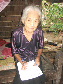 Bà Nguyễn Thị A ký tên nhận tiền bạn đọc gởi tặng. |