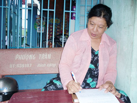 Bà Lữ Thị Điều ký nhận số tiền của bạn đọc gởi giúp đỡ. |