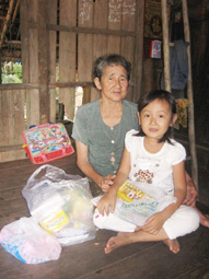 Gia đình bé Trinh nhận quà của bạn đọc Báo Cần Thơ gởi tặng. |