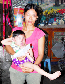 Chị Lý Huỳnh Yến cùng cháu Yến Phương nhận tiền bạn đọc gửi tặng. Ảnh: L.T |