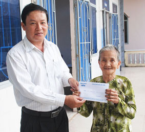 Ông Đỗ Văn Chung, Phó chủ tịch UBND xã Trường Long, huyện Phong Điền, trao tiền của bạn đọc Báo Cần Thơ gởi ủng hộ bà Huỳnh Thị Nhựt, ở ấp Trường Khương A. Ảnh: X.Đ