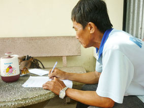 Chú Lê Văn Giỏi - cha của anh Lê Cà Oanh ký nhận tiền bạn đọc Báo Cần Thơ gởi tặng. Ảnh: N.D |