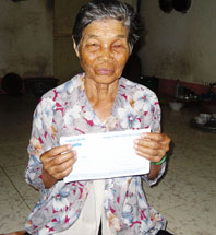 Bà Lê Thị Sen gởi lời cảm ơn nhà hảo tâm đã giúp đỡ. Ảnh: NG.B |