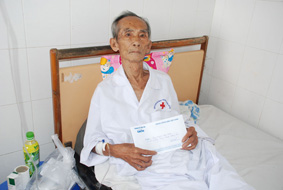 Ông Huỳnh Ngọc Điệp gởi lời cảm ơn nhà hảo tâm đã ủng hộ ông có tiền điều trị bệnh. Ảnh: X.ĐÀO.