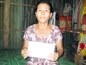 Chị Nguyễn Thị Bé Em, con gái bà Đào nhận tiền nhà hảo tâm gởi tặng. Ảnh: NG. B