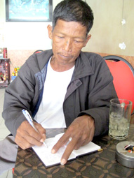 Anh Phụng ký tên nhận tiền của nhà hảo tâm gởi tặng.