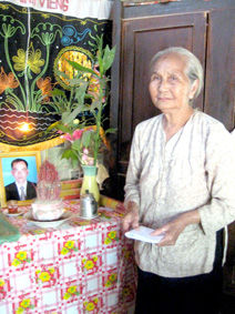 Bà Thanh nhận tiền của nhà hảo tâm gởi tặng.