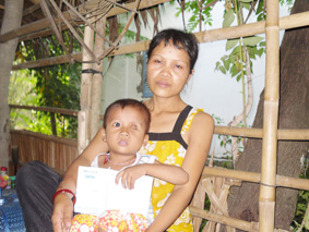 Bé Danh Của nhận tiền do nhà hảo tâm gởi tặng. Ảnh: NG.B. |