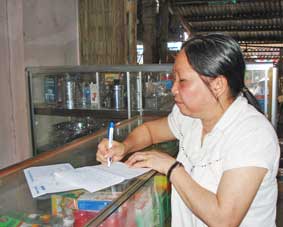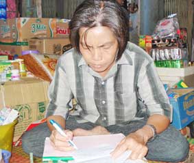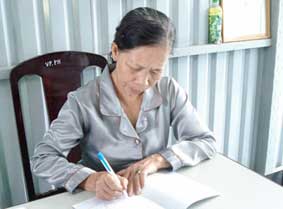Đại diện Chi hội phụ nữ khu vực Thạnh Lợi ký nhận tiền bạn đọc gởi tặng bà Quyên |