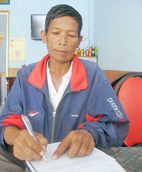 Anh Phụng ký tên nhận tiền của nhà hảo tâm gởi tặng.