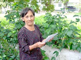 Bà Lang nhận tiền do các nhà hảo tâm gởi tặng. Ảnh: H.V